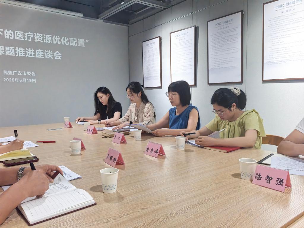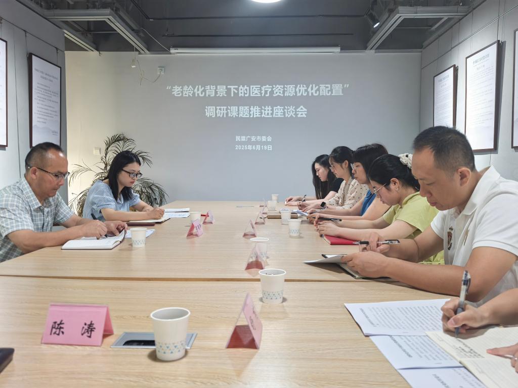 6月19日上午,“老龄化背景下的医疗资源优化配置”调研课题推进会在学校“盟员之家”会议室举行,来自民盟武胜县委会、民盟广职院委员会的课题组成员参加会议,民盟市委会秘书长王莹莹出席会议,会议由民盟市委会副主委、广安区人大常委会副主任罗明轩主持。