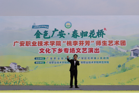 3月24日,正值花桥镇油菜花节之际,民盟广安职院委员会组织部分盟员到广安区花桥镇丰收广场,参加广安职业技术学院和花桥镇人民政府策划的“桃李芬芳”师生艺术团文化下乡志愿服务活动,不仅丰富了人民群众的文化生活,还弘扬了传统文化,使广安职业技术学院师生的专业水平得到了充分展示,受到前来欣赏节目的游客和村民的交口称赞。