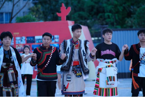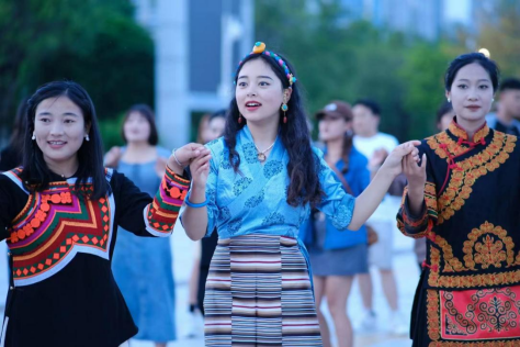 活动现场,身着各民族服饰的学生载歌载舞、青春洋溢;参观的师生流连于各民族服饰,饶有兴致地品尝特色美食、体验民族乐器、学习民族礼仪。苗族和彝族的手工刺绣,藏族的牦牛肉干、青稞、各民族学生的民族服饰、挂毯、手工艺品等,各具特色;以民族特色鲜明的各民族展区,展现各民族风采,也让各族学生感受到不一样的民族文化。篝火晚会更是把活动推向了高潮,各民族师生围着篝火手拉着手尽情的跳尽情地唱,展现出了民族团结一家亲热闹场景。